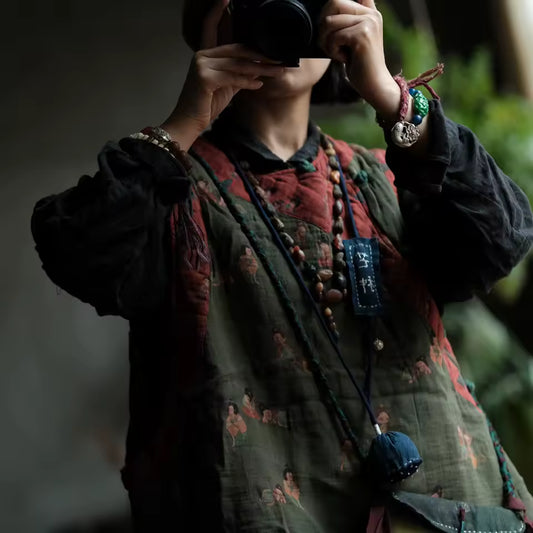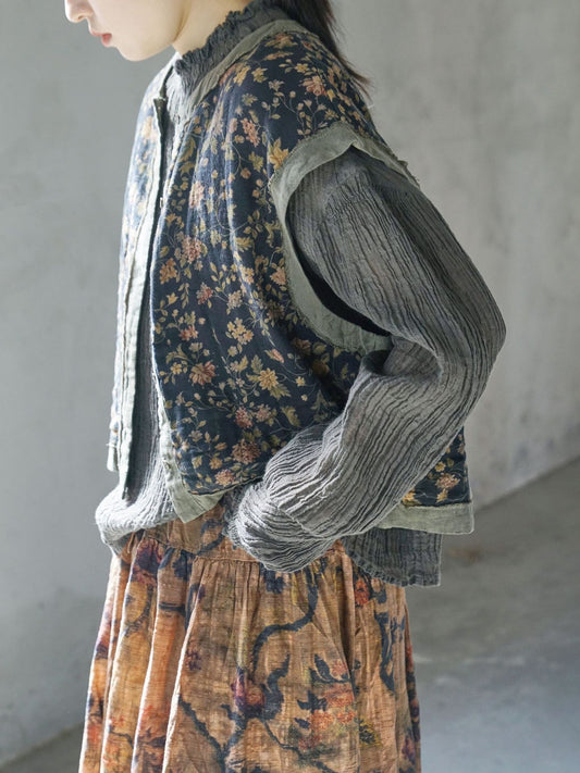 Vintage Patchwork Çiçekli Kapitone Ceket