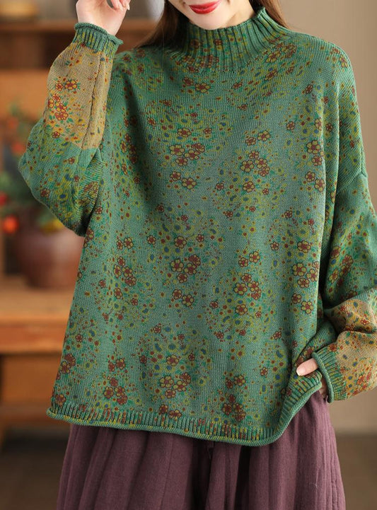 Vintage Çiçek Desenli Balıkçı Yaka Triko