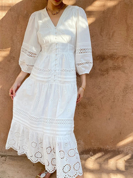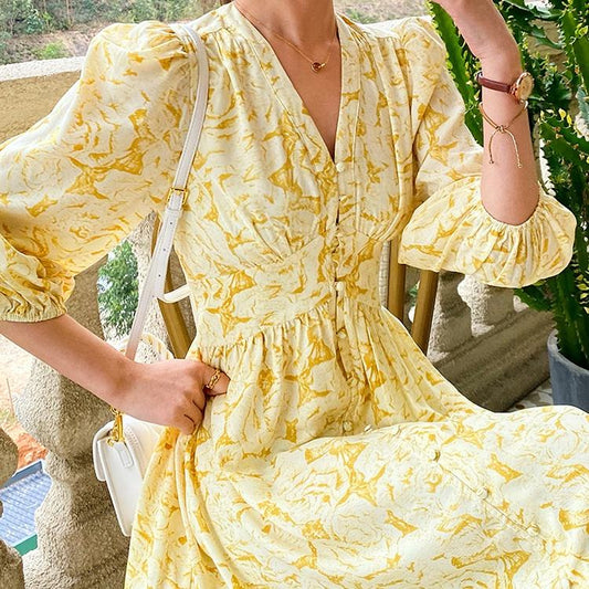 Vintage Bloom Düğme Detaylı Elbise-Tunik