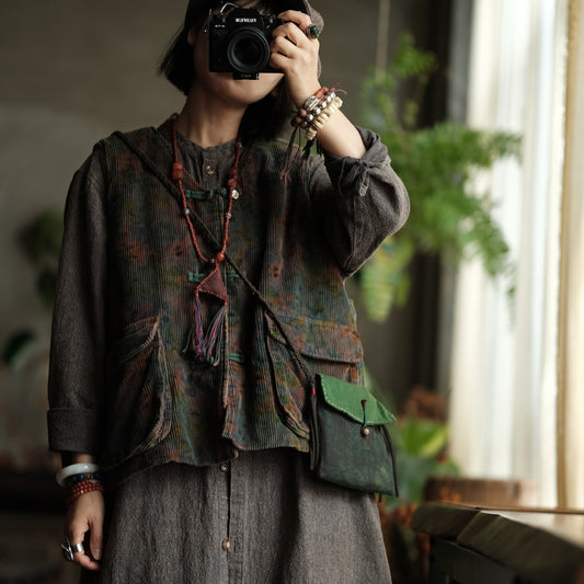 Vintage Daisy Kruvaze Çift Taraflı Yelek