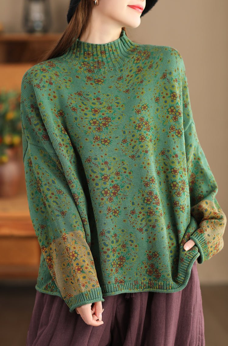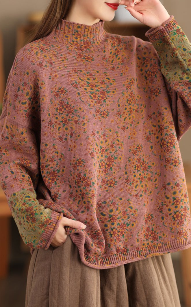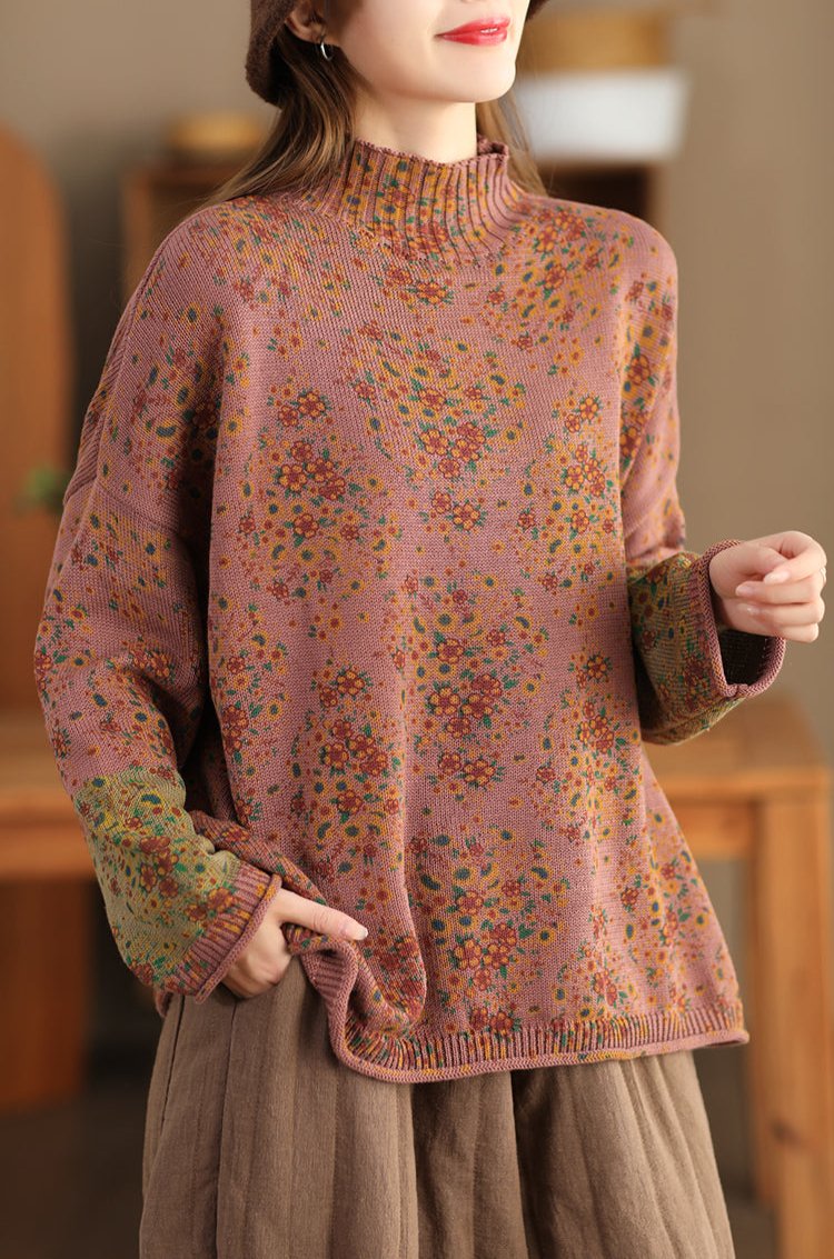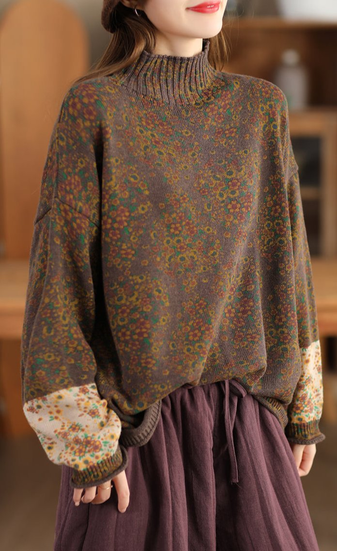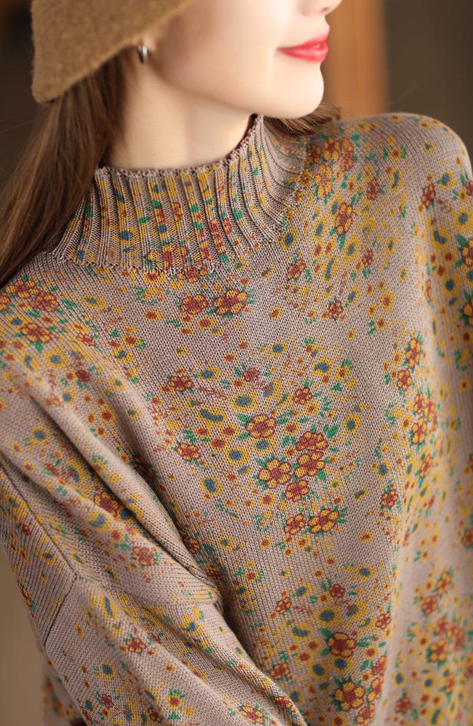 Vintage Çiçek Desenli Balıkçı Yaka Triko