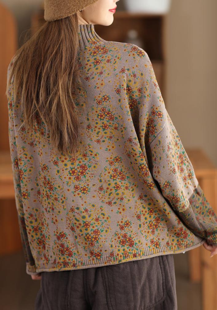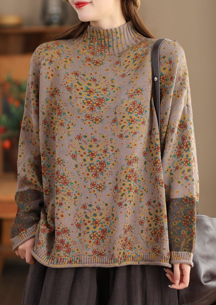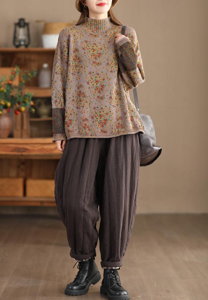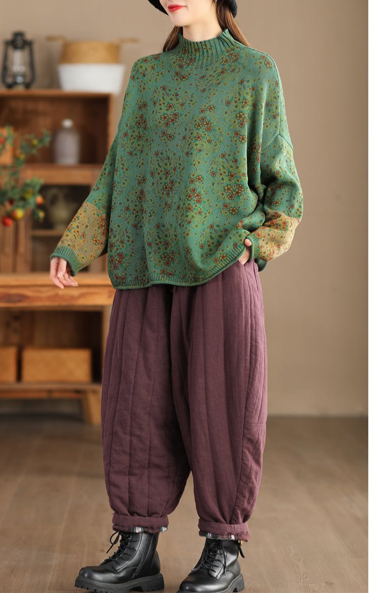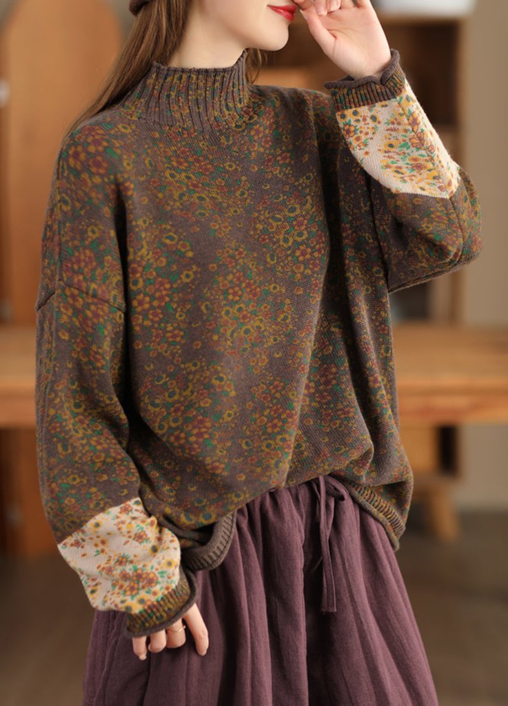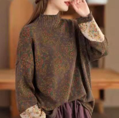 Vintage Çiçek Desenli Balıkçı Yaka Triko