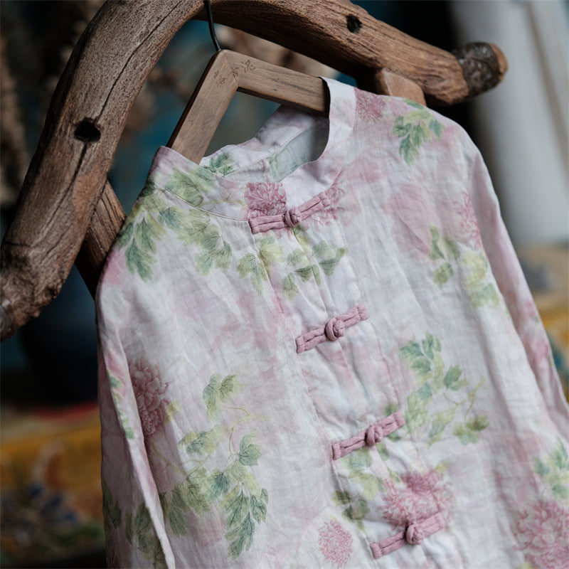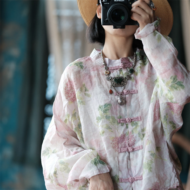 Vintage Floral Wind Bluz, zarif çiçek desenlerini %100 rami kumaşın doğal şıklığıyla buluşturuyor. Geleneksel düğme detayları ve bol, rahat kesimiyle hem konforu hem de stili bir arada sunuyor. Hafif yapısı sayesinde günlük kombinlerinize romantik bir dokunuş katmak için ideal bir seçim.